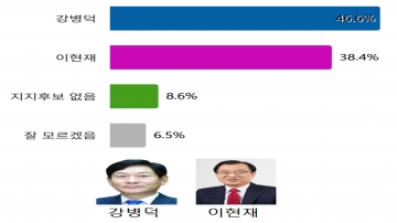 ◇ 강병덕 46.6%, 2위 이현재 38.4%보다 8.2%p 차이로 앞서